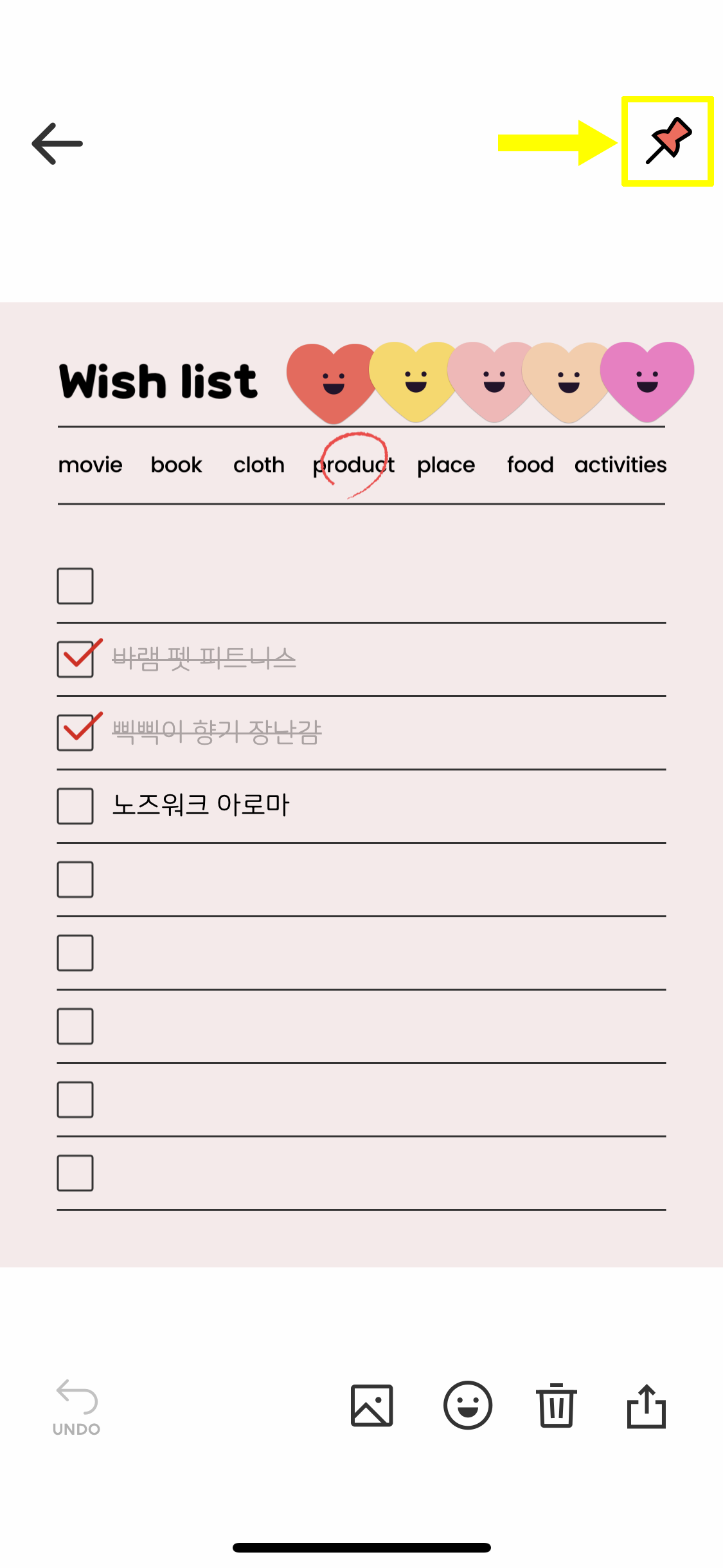 - 편집 완료한 메모는 이미지로 공유 가능하다.