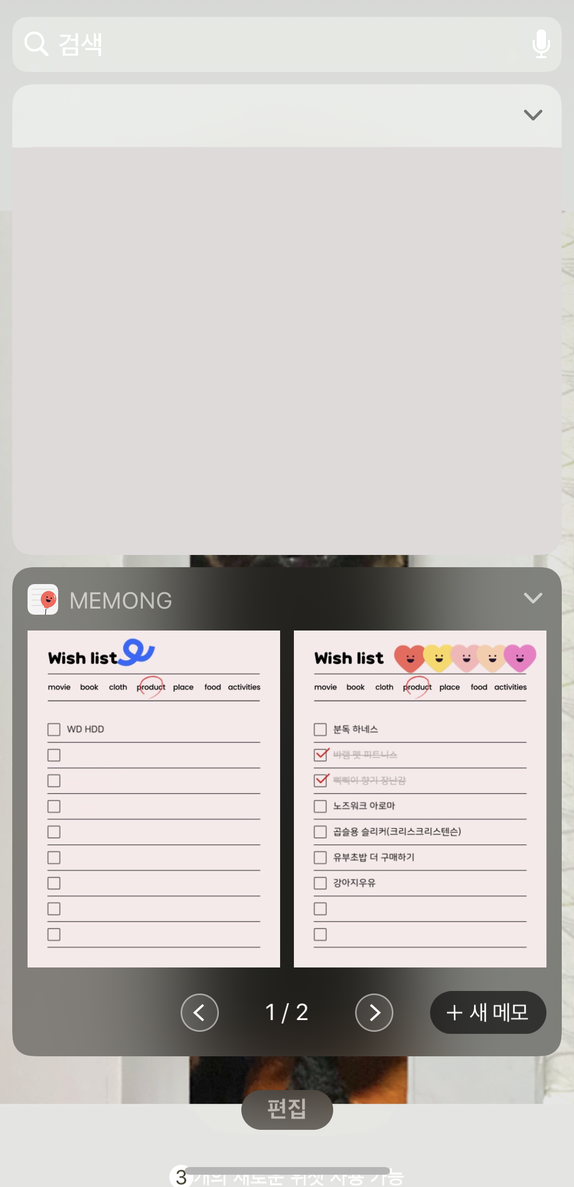 사실 기본 메모 앱도 있는데 메몽을 따로 쓰는 이유 중 하나는 위젯때문. 귀여운 메모지 모양 그대로 위젯으로 사용할 수 있다.