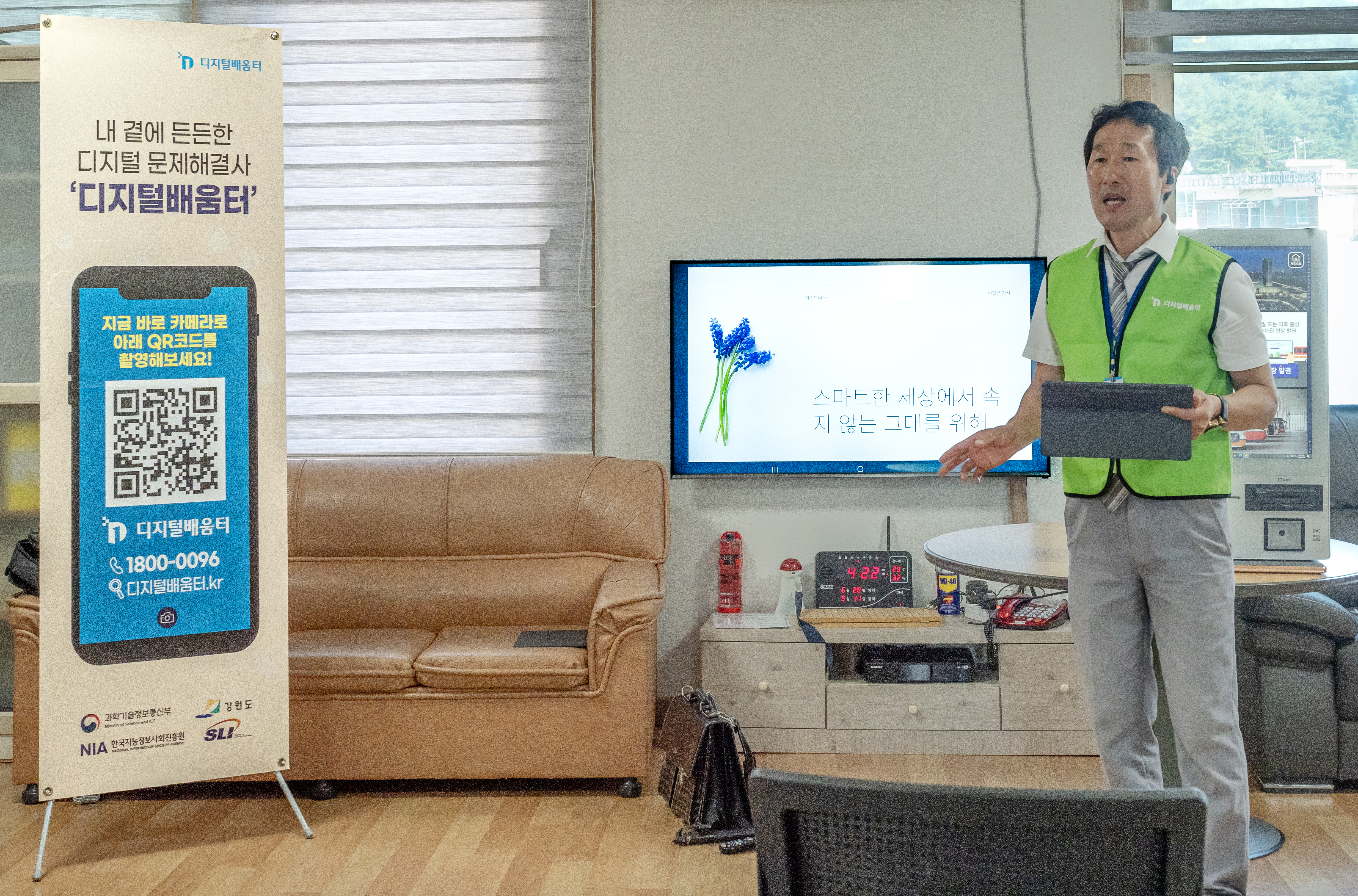 지난 6월 말, 강원지역 디지털배움터 교육을 담당하는 SLI평생교육원 관계자 분의 양해를 구하고 양양군 하광정리 경로당에서 에듀버스 교육을 직접 참관해 볼 수 있었다.